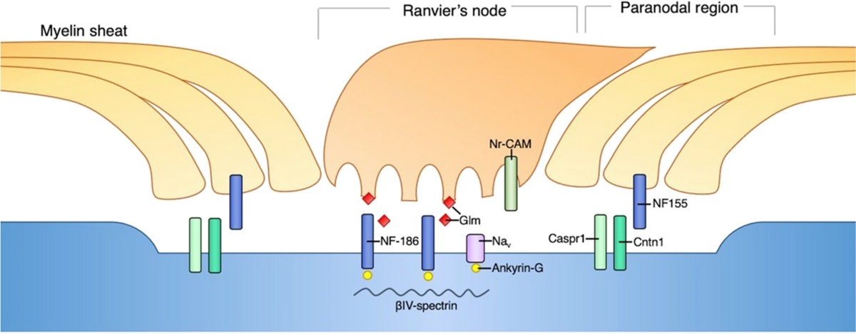 The primary effect of IgG4 anti-NF155 antibodies is likely to be the blockade of interactions between N-155 and CNTN1/CASPR1, which leads to Schwann cell terminal loop detachment from axons at paranodes.