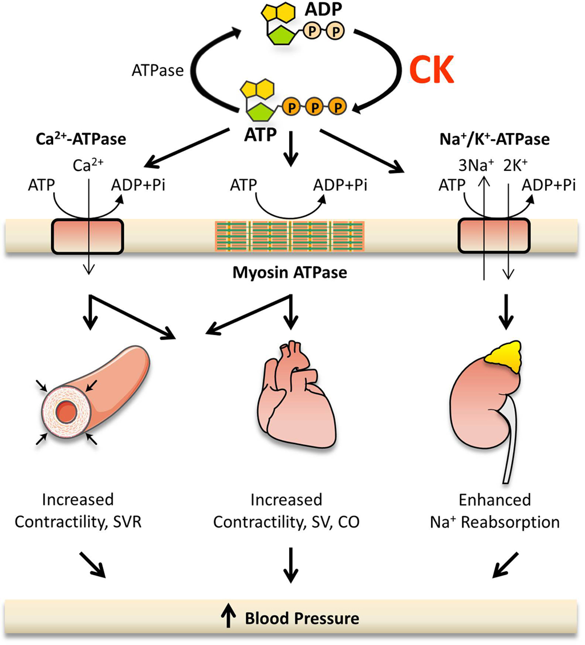 Creatine kinase (CK) is an enzyme that catalyzes the reversible phosphorylation of creatine by ATP. The end product, phosphocreatine, is a readily available energy source for cells. CK is present in many tissues but skeletal and heart muscles contain the highest concentrations. CK released from skeletal muscle accounts for almost all of the CK activity detected in the plasma of healthy individuals. Circulating CK is cleared by degradation in the liver and reticuloendothelial system and has a circulating half-life of 12 hours.