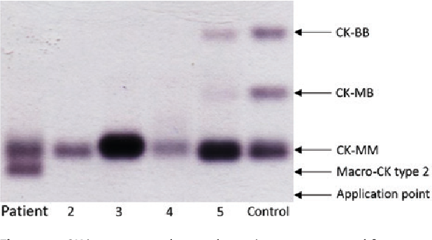 Besides the 3 CK isoenzymes, electrophoresis can also detect 2 types of macro-CK.
