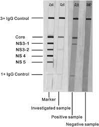 Recombinant ImmunoBlot Assay (RIBA) was a confirmatory test for a reactive HCV antibody. RIBA utilized four recombinant HCV-encoded antigens, which are immobilized as individual bands on test strips. The strips were incubated with patient serum, and if present, antibodies to HCV bound to the corresponding antigen bands on the strip.