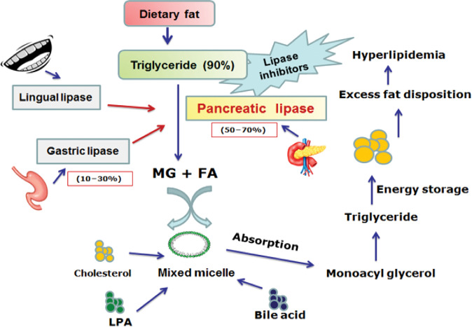 Lipases are a group of enzymes that hydrolyze the glycerol esters of long chain fatty acids. Serum lipase is mainly derived from the pancreatic acinar cells, where it is synthesized and stored in granules. Normally, more than 99% of stored enzyme is secreted into the pancreatic duct and less than 1% diffuses across cell membranes and reaches the circulation via lymphatics and capillaries. In acute pancreatitis, acinar cell membranes become more permeable, allowing much more enzyme to reach the circulation. In hemorrhagic pancreatitis, cellular necrosis leads to even more release of enzyme. Lipase is cleared from plasma by glomerular filtration and is subsequently almost totally reabsorbed and metabolized by the renal tubules. The circulating half-life of lipase is between 7 and 14 hours.