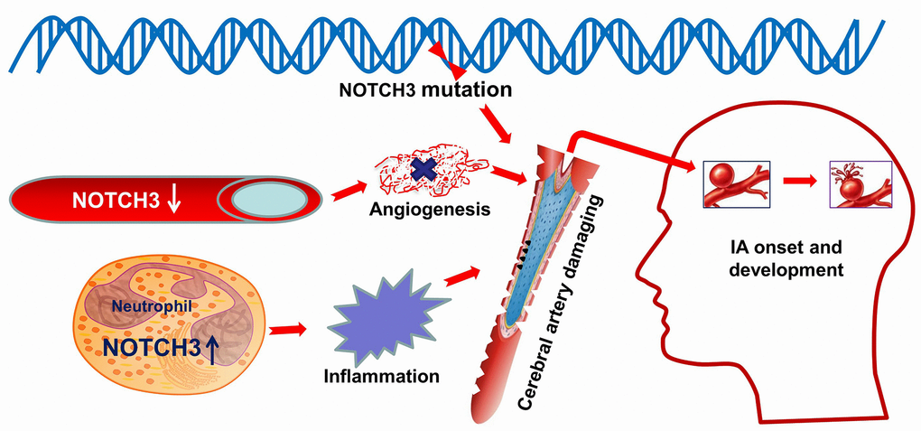 The Notch signaling pathway is an intercellular signaling mechanism that plays a central role during vascular development and physiology. Notch 3 is primarily expressed in vascular smooth muscle cells. Most NOTCH3 mutations are missense mutations, leading to the loss or gain of a cysteine residue in NOTCH3 protein and a change in its tertiary structure. It is not known how the abnormal protein impairs vascular function.