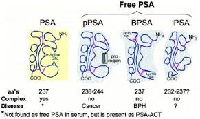 Several recent studies have demonstrated that the specificity of PSA for cancer can be enhanced by measuring the ratio of free to complexed PSA in the serum. Because PSA is a proteolytic enzyme, it becomes bound to plasma protease inhibitors. Some PSA remains free, but most PSA is complexed with alpha-1 antichymotrypsin (PSA-ACT). A very small fraction of PSA is complexed to other protease inhibitors.