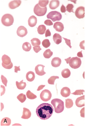 Schistocytes are defined as circulating red blood cell fragments. Detection of schistocytes is an important clue for the diagnosis of thrombotic microangiopathy (TMA), which includes both thrombotic thrombocytopenic purpura (TTP) and hemolytic-uremic syndrome (HUS). Other causes of schistocyte formation include structural abnormalities of heart and great vessels, malfunctioning prosthetic valve, HELLP syndrome, malignant hypertension, and metastatic carcinoma. A more recent indication for schistocyte counting is monitoring bone marrow transplant patients for the onset of TMA, which is a frequent and severe complication. Non-TMA causes of red blood cell fragmentation include red blood cell membrane defects, thalassemia, megaloblastic anemia, primary myelofibrosis, and thermal injury. The red blood cell fragments in these cases show high variability in shapes and marked aniso-poikilocytosis which are not specific for the diagnosis of TMA.