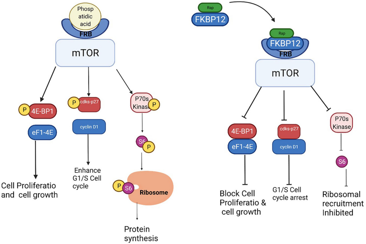 Sirolimus (rapamycin, Rapamune) is a macrolide antibiotic, isolated from Streptomyces hygroscopicus, that suppresses T-and B-cell proliferation. Sirolimus inhibits the protein kinase mTOR and arrests the cell cycle. It has no effects on calcineurin and, therefore, can be used in addition to cyclosporine or tacrolimus. Adverse effects of sirolimus are concentration-dependent, making therapeutic drug monitoring essential.