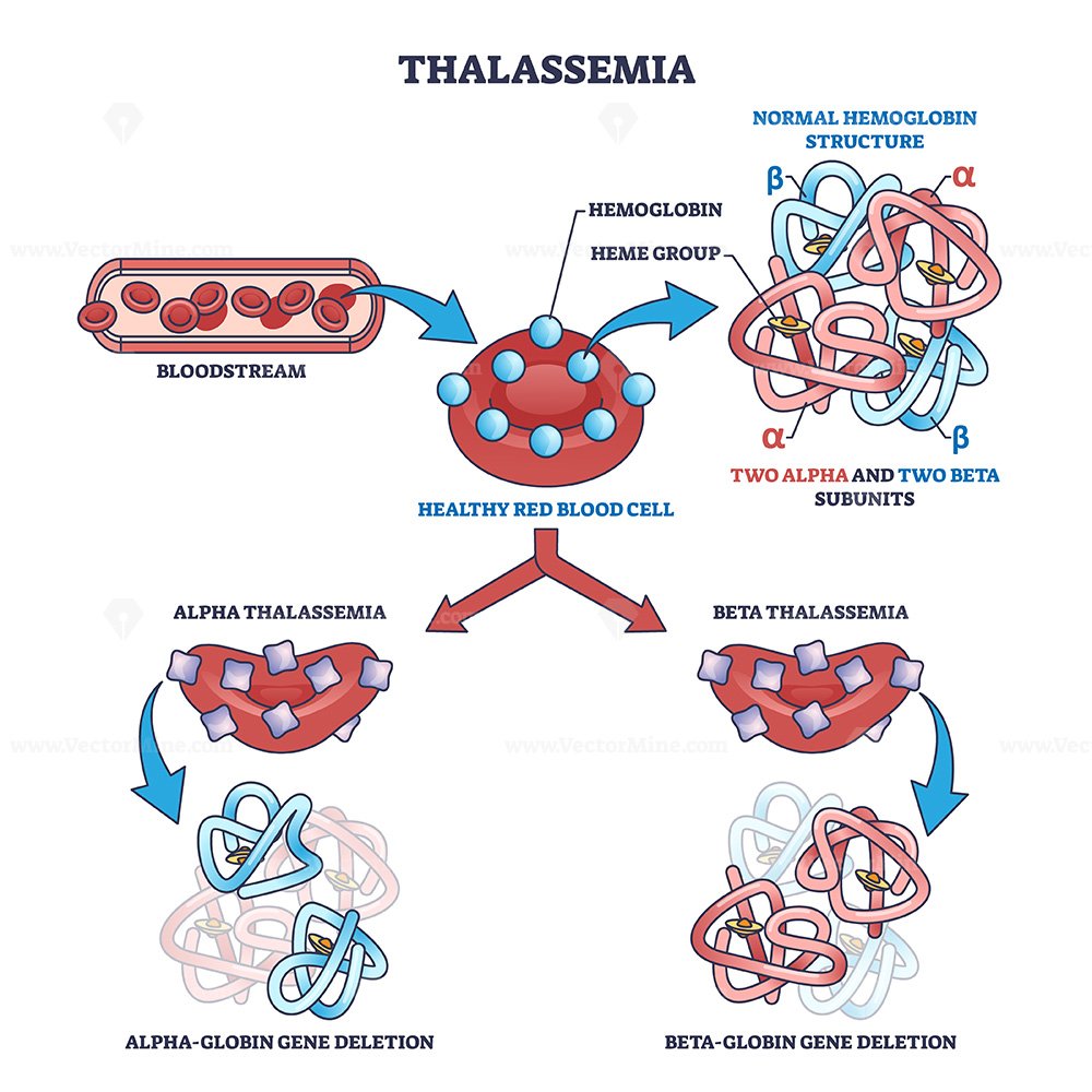 The thalassemia syndromes are divided into two main groups. Beta-thalassemia is caused by deficient synthesis of structurally normal beta-chain, whereas alpha-thalassemia is caused by deficient synthesis of structurally normal alpha-chain. The gene abnormalities in both of these syndromes are heterogeneous leading to significant variation in clinical manifestations. Beta-thalassemia is most prevalent in people of Mediterranean descent, while α-thalassemia is common in Southeast Asia and Africa, and occasionally in Mediterranean and Middle Eastern populations. A significant difference between these two disorders is the number of genes on the chromosome that encode for each of the globin chains.
