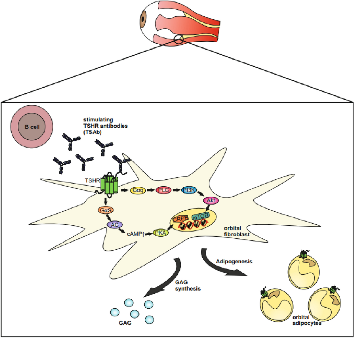 All forms of autoimmune thyrotoxicosis (Grave’s disease, Hashitoxicosis, and neonatal thyrotoxicosis) are caused by the production of TSHR-stimulating autoantibody (TSHR-antibody), which are also known as long-acting-thyroid-stimulator (LATS) or thyroid-stimulating immunoglobulins (TSI). These autoantibodies bind to the thyrotropin receptor and activate it, leading to stimulation of the thyroid gland independent of normal thyrotropin (TSH) stimulation. TSHR autoantibody may be detected before autoimmune thyrotoxicosis becomes clinically apparent.