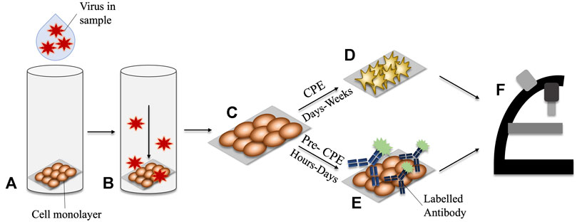 Living cells are required to grow viruses in the laboratory. A combination of tube media and shell vials containing specialized cell lines are classically used for virus cultures. Viruses can be detected their cytopathic effect or by antibody staining.